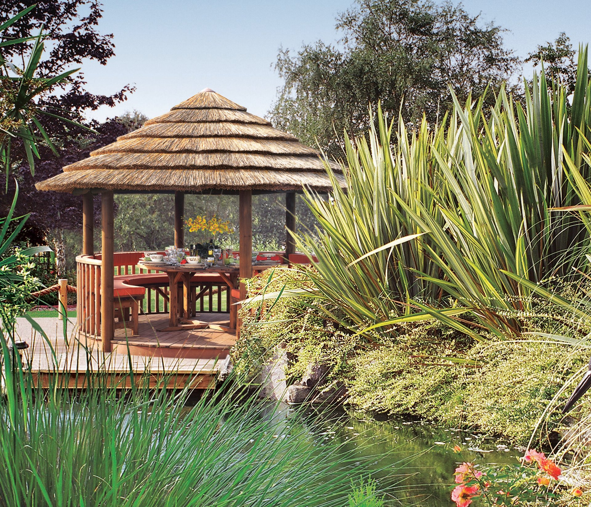 Our natural materials ensure the building blends in beautifully with its surroundings and creates an unusual and impressive feature in any garden. Whether you want to have breakfast in the early morning sun or entertain 10 people to dinner, the Safari will lend itself perfectly.